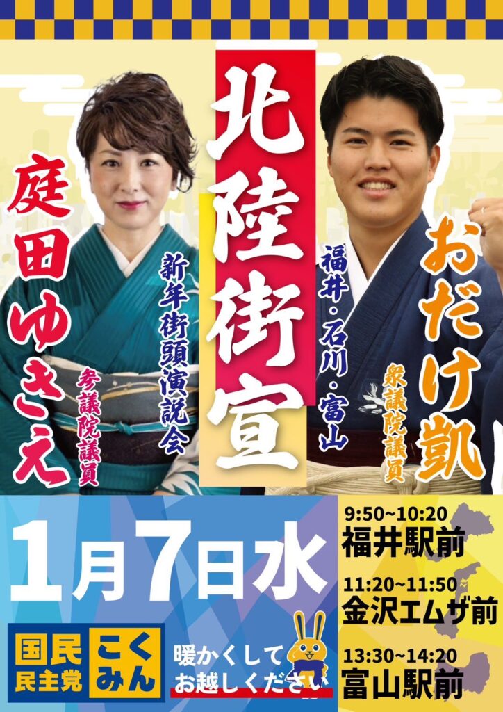 令和8年が幕を開け、福井県連では以下のとおり、新年街頭演説会を開催します。