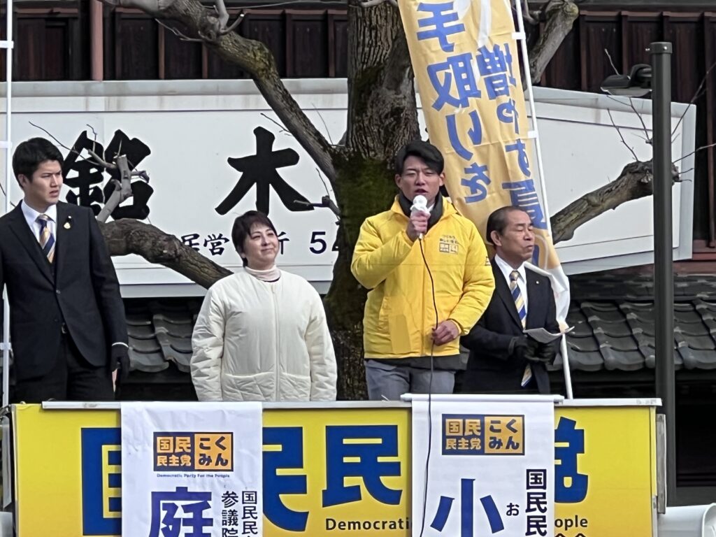演説会では、冒頭、福井県連の川畑孝治幹事長(坂井市議会議員)からの挨拶に続き、小竹議員からは、政策実現を一つひとつ積み上げていくことや石川県選出として能登の復興に全力を挙げること、庭田議員からは、ガソリン暫定税率廃止は皆さんの声が大きな力となって実現できたことを踏まえ、北陸など地方でも豊さが実感できる政策提言に取り組む旨、力強い言葉がありました。